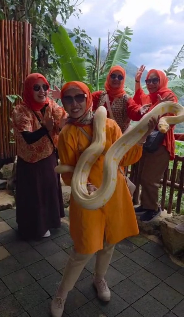 Di Arunika Kuningan, Pengunjung kulineran, menikmati alam dan mengelus ular. ..