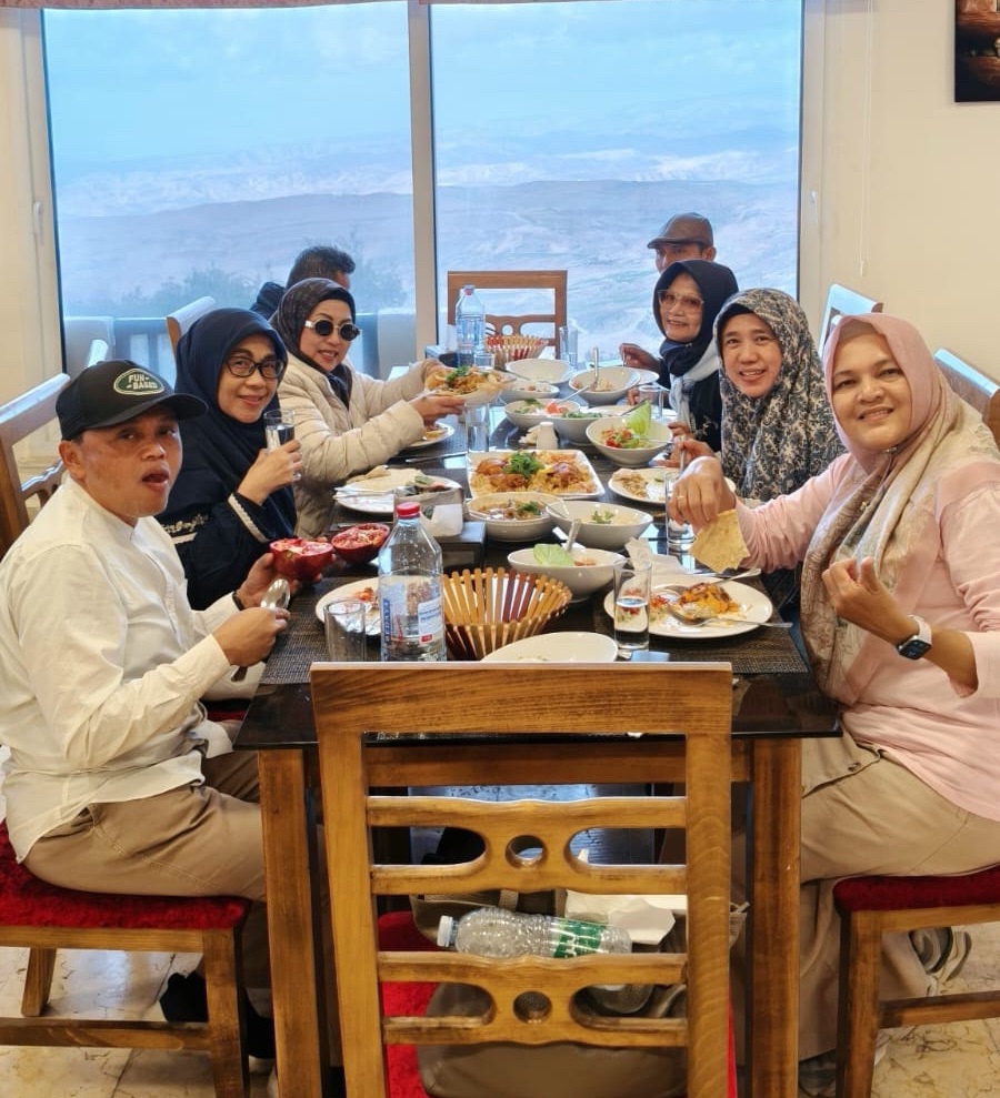 SEBELUM melanjutkan perjalanan pulang ke Tanah Air, kami terlebih dahulu dijamu dengan masakan khas Yordania sebagai penutup rangkaian perjalanan ziarah yang penuh makna.
